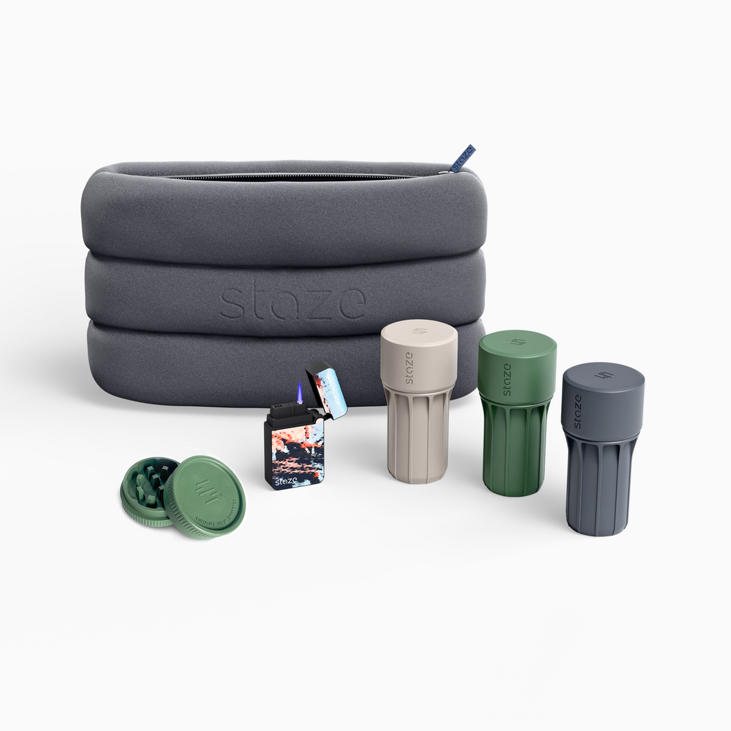 The Adventurer Bundle is designed for those who keep it moving—wherever the day leads. This all-in-one set includes the Staze Preserve Trio for ultimate freshness, a windproof Torch Lighter, a compact Hemp Grinder, and our Drift Smell-Proof Bag for discreet storage on the go.