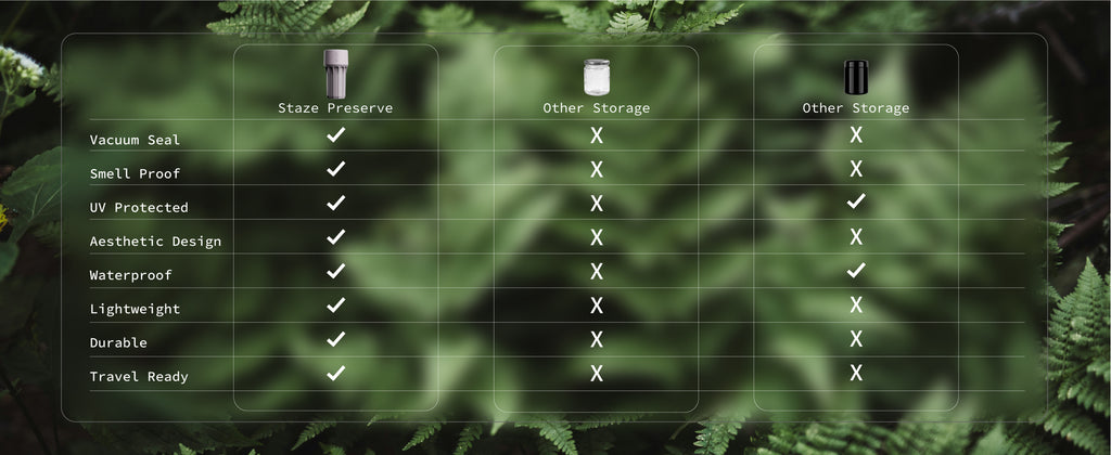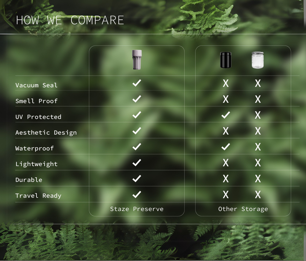 Not at all. While it’s an incredible option for dry herbs, the Staze Preserve is designed for any air-sensitive materials. Thanks to its patented vacuum-seal technology and airtight design, it works just as well for coffee, tea, gummies, spices, supplements, or other goods you want to keep fresh and protected. It’s versatile, discreet, and built to preserve whatever matters most to you.